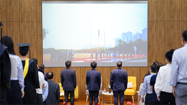 全体人员在升旗仪式行注目礼