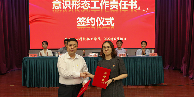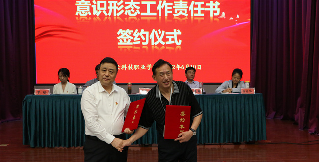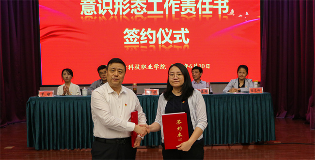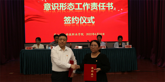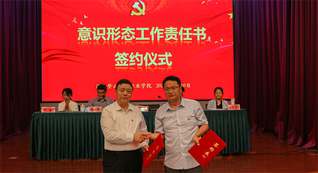 会上,马长世书记代表学校党委和各党总支负责人分别签订了意识形态工作责任书。