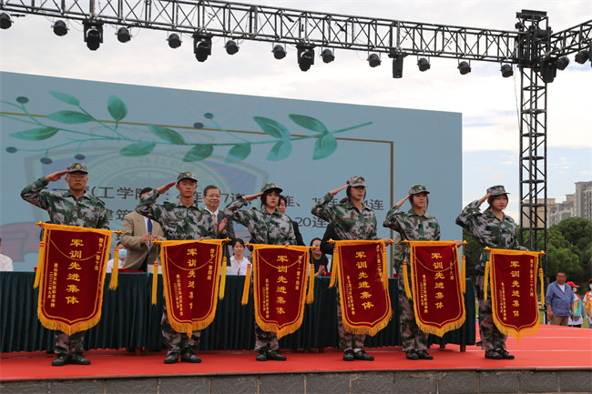 徐伟副校长宣读军训表彰决定。对军训中同学们的出色表现给予了充分肯定。校领导分别为军训先进集体、军训优秀学员和军训优秀指导员颁奖。