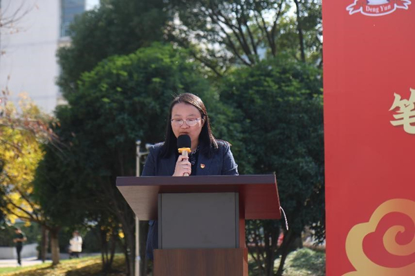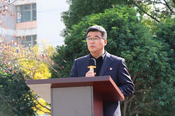 随后,徐伟副书记发表讲话。他强调,积极健康向上的寝室文化对大学生成长成才有着举足轻重的作用,是弘扬中国精神、厚植国主义情怀,锤炼意志、锻造品格,促进青年学生身心健康的重要载体,“笔墨共绘二十大,文明校园师生行”党的二十大精神进公寓宣教活动的成功举办不仅是落实“立德树人”根本任务,推动构建“三全育人”工作格局和加强校园文化建设的有力措施,更是推动当代青年大学生传承伟大建党精神、培育堪当民族复兴重任的时代新人的重要举措。他对青年学生提出四点希望:一是爱护环境卫生,做一个热爱劳动的人—希望同学们能崇尚劳动、尊重劳动,懂得劳动最光荣、劳动最伟大的道理,通过劳动树德、增智、强体、育美,步入社会后能够辛勤劳动、诚实劳动、创造性劳动;二是践行契约精神,做一个诚实守信的人—希望同学们能自觉遵守管理制度,在学习生活中践行契约精神,追求真善美,为将来步入职场、走向社会奠定基础;三是加强团队合作,做一个融入集体的人—希望同学们热爱集体、关心集体、自觉为集体尽义务、做贡献、争荣誉,增强自我约束、自我提高、共同进步的意识。四是锤炼品德修为,做一个追求理想的人—希望同学们在宿舍文化建设中尽心尽力、尽善尽美,追求卓越,共同创设健康向上的文化氛围,为学校文明校园建设贡献力量。最后,他勉励同学们要深刻学习领悟党的二十大精神,自觉树立和践行社会主义核心价值观,自觉用中华优秀传统文化、社会主义先进文化培根铸魂、启智润心,加强道德修养,明辨是非曲直,增强自我定力,矢志追求更有高度、更有境界、更有品位的人生,立志做一个有理想、有追求的人,在党和人民最需要的地方施展才华、建功立业,在以中国式现代化全面推进中华民族伟大复兴新征程上贡献青春力量。