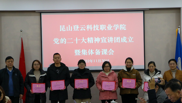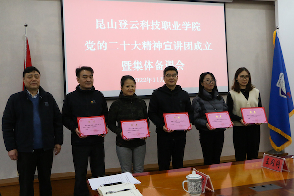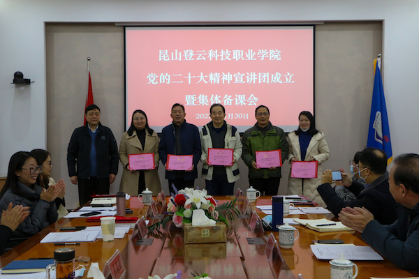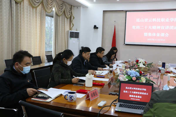 为推动宣传贯彻党的二十大精神的学习热潮,广泛深入开展党的二十大精神学习宣讲,引导广大师生员工切实把思想和行动统一到党的二十大精神上来,11月30日,beat365在J2大会议室举行学习贯彻党的二十大精神宣讲团成立大会暨集体备课会,党员校领导张进明、马长世、徐伟、陈长伟、罗瑜,党委委员,各党总支书记,党群各部门负责人及思政课教师一同参加。
