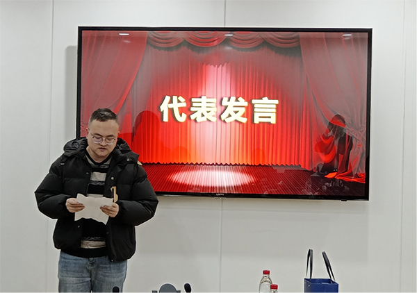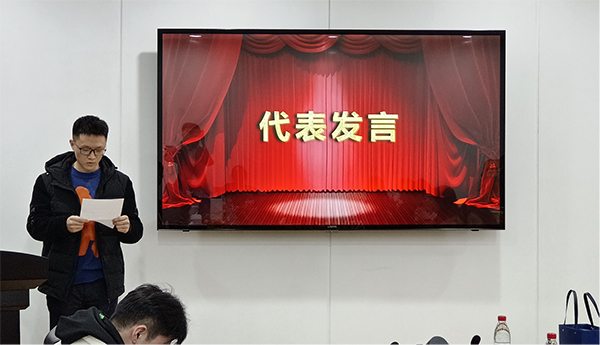 联培生邹华涛和万向阳同学作为学生代表发言,他们对学校、企业和老师们表达了感谢,同时也分享了联培实习的感想和对未来的畅想。