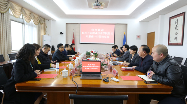 4月6日下午,杭州万向职业技术学院院长牟惠康一行莅校参访交流,受到校长张进明、副校长陈长伟、校长助理罗瑜的热情接待,工学院院长刘言强、建筑与设计学院院长宋承裕等陪同交流。