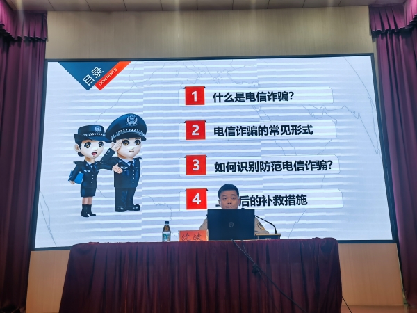 讲座开始时,沈所长首先结合具体案例,向同学们介绍几种常见的诈骗方式,并通过视频、图片等资料向同学们强调个别极易落入圈套的骗术,如裸聊盘、杀猪盘、冒充京东客服人员等,进一步强化学生们的防诈骗意识。随后,沈所长就如何识别防范电信诈骗向同学们说明电话诈骗的共同规律,并提出了防范电信诈骗的十大守则,告诫同学们要提高防范诈骗的能力,避免成为诈骗分子的帮凶。讲座最后,沈所长引导同学们积极安装“国家反诈中心”APP,降低电信诈骗风险。