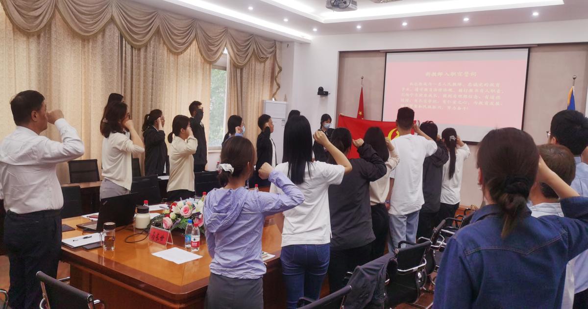 最后,举行了新教师入职宣誓仪式,新教师面对党旗,庄严宣誓:“我志愿成为一名人民教师,忠诚党的教育事业,遵守教育法律法规,履行教书育人职责,引领学生健康成长……”掷地有声的誓词,紧握高举的右手,是每一位新教师的自我期许,他们将自己的教育初心使命和理想信念紧紧地凝聚在庄重的誓词里,成为在未来教育道路上砥砺前行的强大动力!