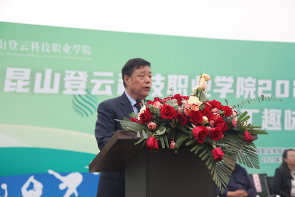 在庄严的国歌声中,升国旗仪式开始。台上领导及全体师生起立,行注目礼,国旗伴随着国歌冉冉升起。随后,徐伟副校长致开幕词。他在致辞中向参与运动会的全体师生、工作人员致以亲切的问候,希望广大师生发扬“更快、更高、更强、更团结”的奥林匹克精神和“胸怀大局、自信开放、迎难而上、追求卓越、共创未来”的北京冬奥精神。希望全体运动员在运动场上赛出水平、赛出风格,再创佳绩。