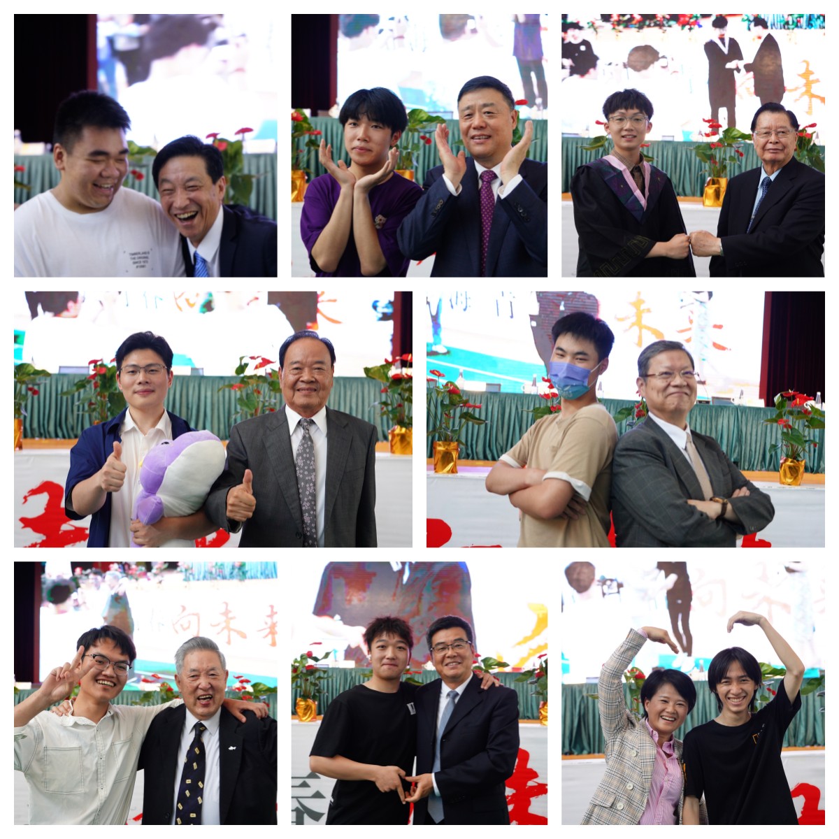 出席典礼的还有执行董事李先立、校长张进明、党委书记马长世、董事会监事沈尤成、荣誉校长郑家泰、副校长徐伟、副校长陈长伟、校长助理罗瑜等领导,他们与林董事长一起,为优秀毕业生进行颁奖,共同见证同学们的高光时刻。此外,领导们来到学生中间,跟同学们亲切合影,他们配合着同学们摆起了俏皮的动作造型,体现了登云对学子们满满的宠爱,现场笑声阵阵、掌声不断、氛围欢乐又感人。