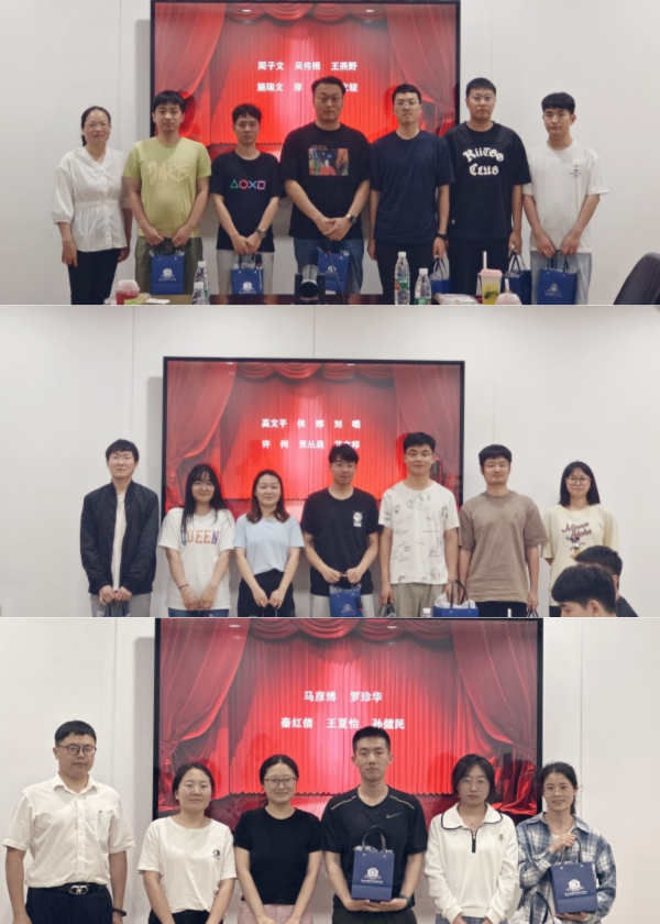 朱爱梅、戈圆圆、陶鑫超分别为联培学生送上结业礼物