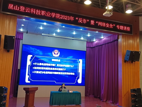 讲座开始时,杨警官首先从电信诈骗的概念、特点、种类等方面,向同学们进行了深入浅出的讲解。她通过视频、图片等资料,再结合众多鲜活案例、办案实践等,就电信诈骗要点展开详细阐述。她号召同学们从现在起,要防范电信网络诈骗,勇做传播互联网正能量的主力军,为净化网络空间奉献青春力量。讲座最后,杨警官引导同学们积极安装“国家反诈中心”APP,降低电信诈骗风险。