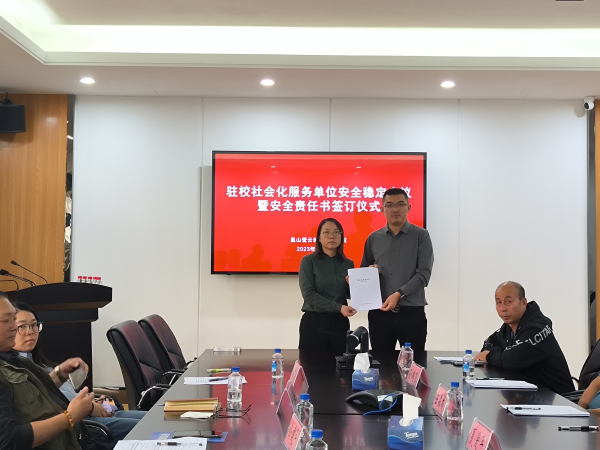 会上,后勤保卫处与驻社会化服务单位签订安全责任书。与食堂商体单位签订了“综合治理责任书”;与维修单位签订了“校园施工安全责任书”。
