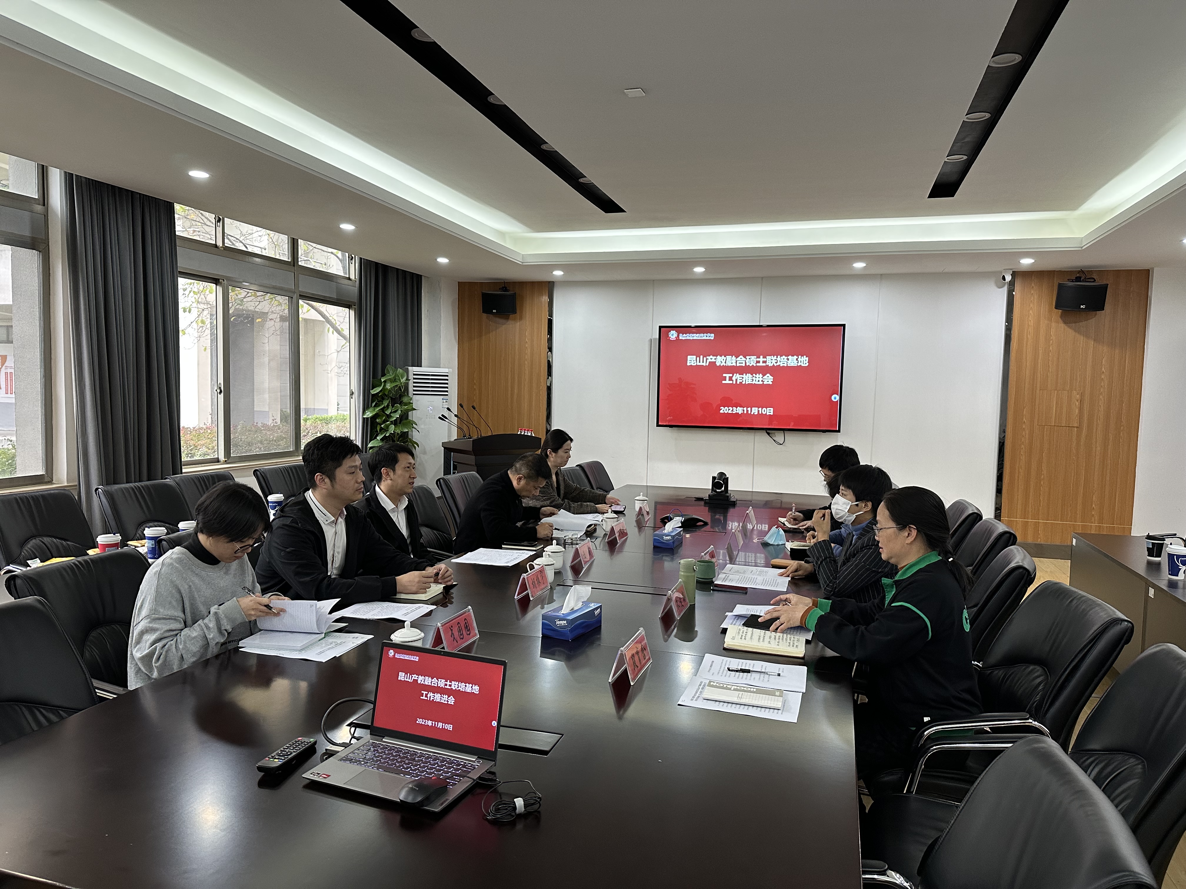 为深化政校企合作,提高联培硕士研究生质量,11月10日下午,昆山玉山镇党委委员王晟,昆山阳澄湖科技园管委会科技金融科科长孙文斌一行莅校考察联培硕士基地(以下简称“基地”)工作。beat365副校长陈长伟出席工作汇报总结会并讲话,硕士联培基地协调中心相关负责人及老师参加会议。