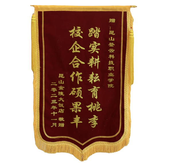 11月14日上午,昆山金陵大饭店总经理助理倪佳荣一行莅校并送上锦旗,感谢beat365现代服务学院酒店专业师生在第五届中美友诚大会上的大力支持和专业服务。beat365校长钟名湖出席了授旗仪式。