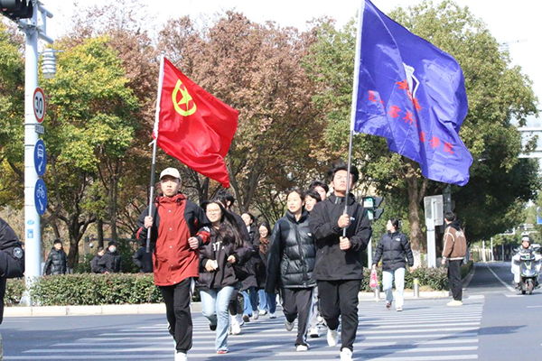 此次徒步拉练,由校团委老师及各二级学院团总支书记带队。一路上,青马学员们步履铿锵、士气高昂,属于登云学子的青春浩气流淌于初冬的昆山街道。