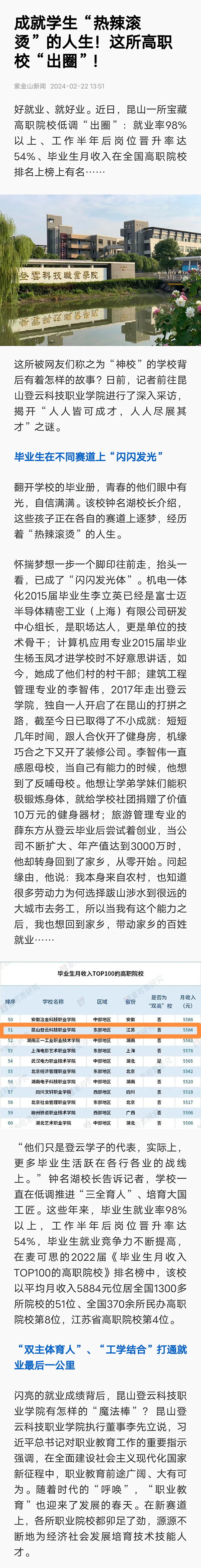 南京日报/紫金山新闻:昆山一宝藏高职校“出圈”!看他们如何成就学生“热辣滚烫”的人生