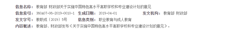 为深入贯彻落实全国教育大会精神,落实《国家职业教育改革实施方案》,集中力量建设一批引领改革、支撑发展、中国特色、世界水平的高职学校和专业群,带动职业教育持续深化改革,强化内涵建设,实现高质量发展,现就实施中国特色高水平高职学校和专业建设计划(以下简称“双高计划”)提出如下意见。