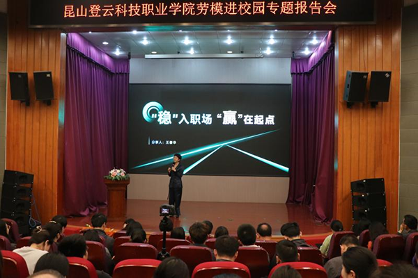 4月28日,学校邀请昆山市劳动模范、五一巾帼标兵、苏州市职工思政教育“百师百课”讲师团成员王春华老师到校做专题报告。昆山市高新区总工会基层组织建设部部长庄艳,学校党委副书记、副校长徐伟出席活动,全校师生代表250余人参会,报告会由工会办主任丁银辉主持。