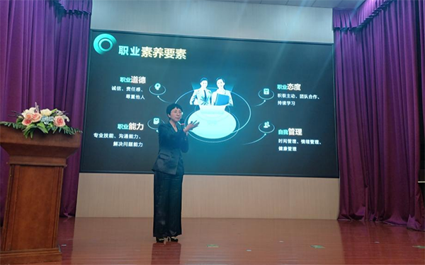 报告会上,王春华老师以《“稳”入职场 “赢”在起点》为题,从职业素养、职业发展、企业案例、幸福人生等四方面展开分享。报告既有职业成长的理论知识,又有丰富的职场实战经验;既讲述了新质生产力发展对技术技能人才的需求,又结合富士康人才培养体系,提出了未来技能人才成长的目标和方向。在报告会最后,王老师勉励青年学子“稳”入职场、“赢”在起点,找到人生幸福的密码,成就更加美好的人生。