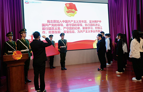 培训在庄严的国歌声中拉开帷幕。校团委老师宣读2024年新团员名单,各二级学院团总支书记为新团员代表佩戴团徽,颁发团员证。200名新团员面向团旗庄严宣誓;新团员代表作表态发言:大家要用自己的实际行动肩负团的使命、践行团的宗旨,在实践中锤炼、在探索中求知,在学习中进步,争做有理想、敢担当、能吃苦、肯奋斗的新时代好青年。