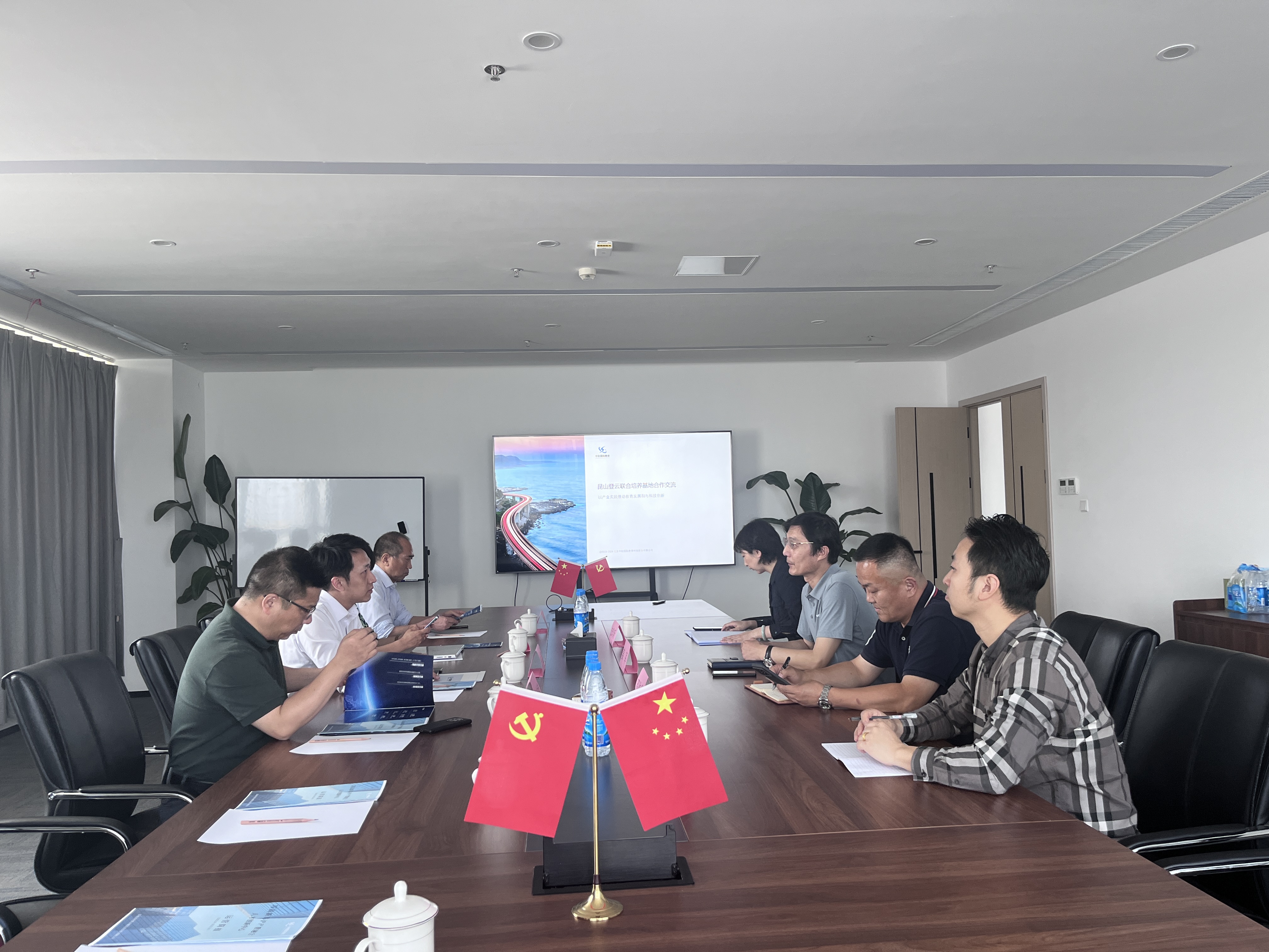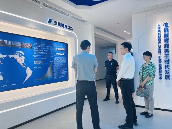 5月24日,beat365会员官方网站副校长陈长伟、昆山玉山镇党委委员、昆山阳澄湖科技园管委会副主任王晟,昆山阳澄湖科技园管委会产教融合科科长孙文斌、工学院教授杨正校等一行应中软国际教育科技集团(以下简称“中软国际”)邀请赴企参观交流,受到中软国际副总裁姜军等人的热情接待,三方就产教融合的合作模式与未来发展进行了深入探讨。