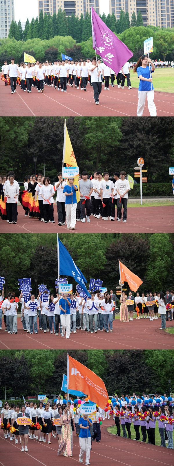 5月22日上午,运动会开幕式在田径场召开。学校董事会执行董事李先立出席并宣布运动会开幕。校长钟名湖,党委副书记、副校长徐伟,副校长陈长伟,党委委员、校长助理胡鹏远、苏琼瑶等领导和各部门相关负责人出席开幕式,国旗方队、校旗方队、红旗方队、鲜花方队以及4个学院代表队和教职工代表队参与入场式。学校党委副书记、副校长徐伟主持开幕式。