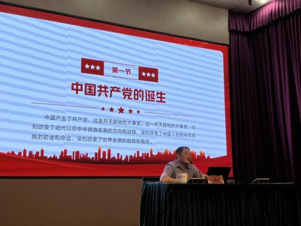 胡鹏远校助作题为《感悟思想伟力 筑牢信仰之基》的党课。
