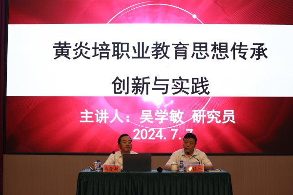 7月7日上午在多功能报告厅,中国轻工业联合会副会长、教育部职业教育轻工行指委副主任、南京工业职业技术大学原党委书记吴学敏研究员为我们做了“黄炎培职业教育思想传承创新与实践”专题报告。