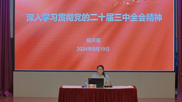 报告会上,杨天霞以“深入学习贯彻党的二十届三中全会精神”为主题,从深刻理解和把握党的二十届三中全会的重大意义、深入学习领会习近平总书记在全会上的重要讲话精神、全面准确理解《决定》提出的进一步全面深化改革重大举措、全力以赴抓好全会精神贯彻落实等四个方面,对党的二十届三中全会精神做了全面宣讲和系统阐述,让全校师生入党积极分子、团学干部对党的二十届三中全会精神的核心要义、丰富内涵和实践要求有了全面的了解和深入的理解。