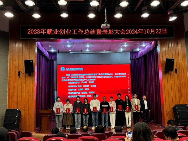 陈长伟副校长宣读了《关于表彰2023年就业创业工作先进个人的决定》,毛念琪等10位辅导员获2023年毕业生就业工作先进个人称号。钟名湖校长为获奖老师颁发荣誉证书。