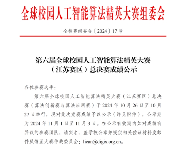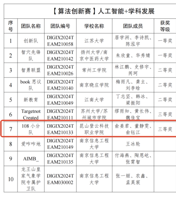 近日,由全球校园人工智能算法精英大赛全国组委会指导,江苏省人工智能学会主办的第六届全球校园人工智能算法精英大赛(江苏赛区)总决赛成绩揭晓。beat365信息与软件工程学院俞姜君、董静雯、俞钰江三位同学,在徐志慧、许桂平老师的指导下,深度学习和运用人工智能技术,凭借出色的表现,喜获“【算法创新赛】人工智能+学科发展”赛项三等奖。