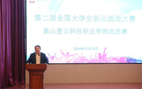 11月15日,第二届全国大学生职业规划大赛beat365会员官方网站选拔赛在beat365多功能厅举办。beat365校长钟名湖出席活动并致开幕词,昆山市人管中心创业科副科长许文杰、昆山市人管中心用工科副科长龚卫栋、昆山市人社局“点燃生涯”工程首席导师李雪梅、大学生生涯规划指导老师康世杰及beat365团委书记侯延华莅临现场担任评委老师,招生就业处、各二级学院辅导员及学生代表参会。