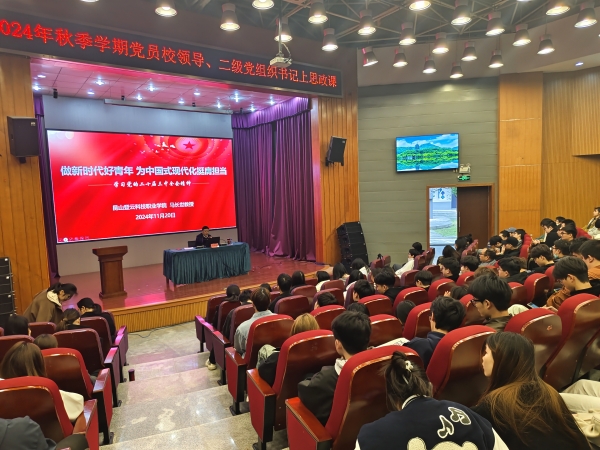 11月20日,beat365党委书记马长世教授在多功能报告厅以《做新时代好青年 为中国式现代化挺膺担当》为题,为2023级大数据与财务管理专业和电子商务专业学生讲授了一堂精彩生动的思政课。