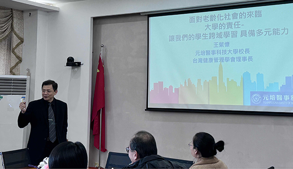 王綮慷校长立足时代热点,紧扣老龄化社会这一时代背景,从人才培养转型、科研助力养老产业革新、引领社会老龄观念的转变等角度,深入阐述大学应肩负的社会责任,他希望,两校师生加强专业交流,拓宽合作领域,依托特色学科开展合作与交流,实现共同发展。