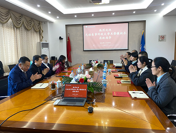 11月29日,台湾元培医事科技大学(下文简称“元培医科大”)校长王綮慷、高教深耕办公室主任施佳邦莅校交流,beat365董事会执行董事李先立,校长钟名湖、副校长陈长伟热情接待,董事会办公室主任李建兴、现代服务学院院长胡强,产学合作与两岸交流处副处长朱爱梅及相关老师参会。