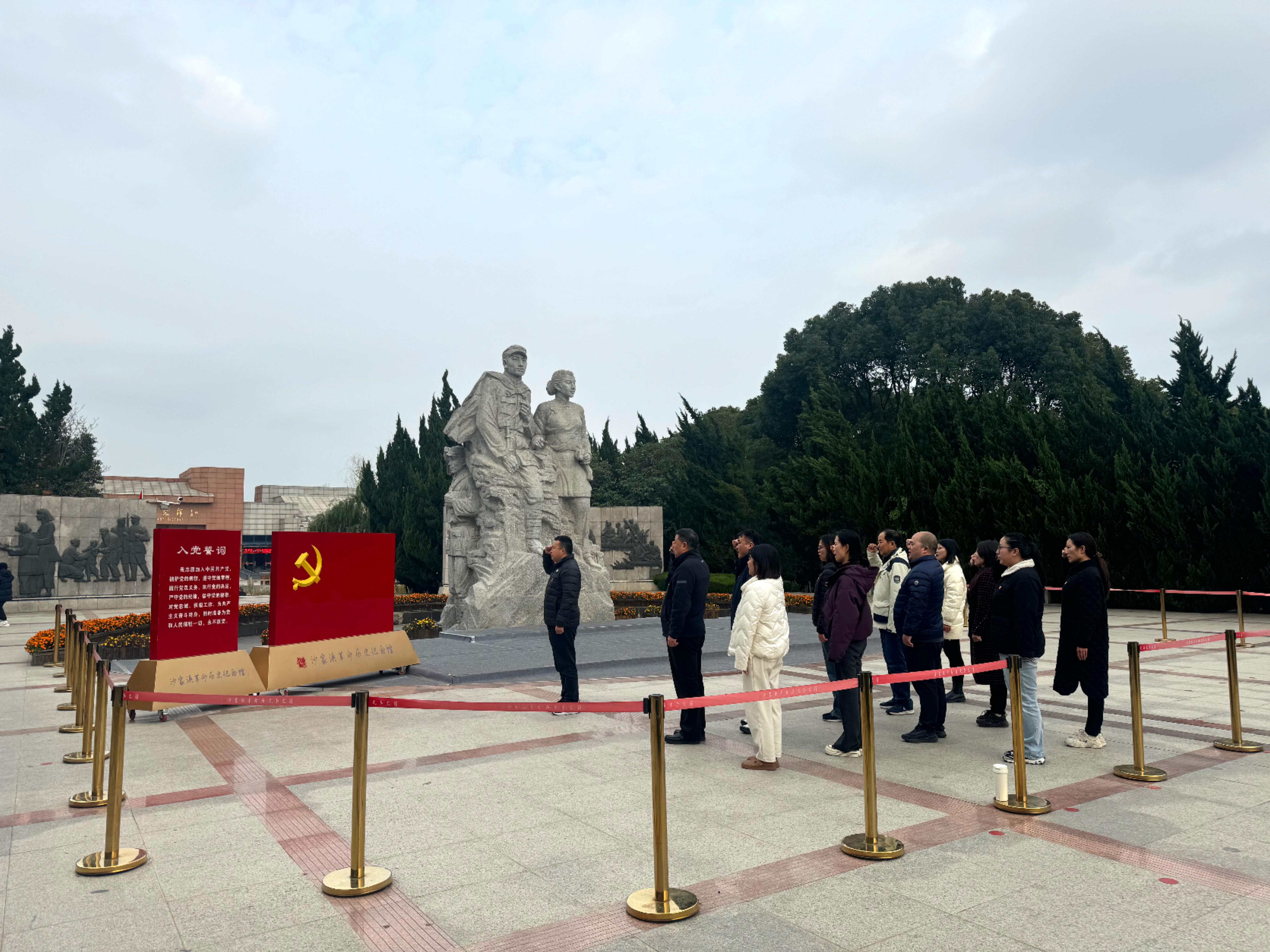随后,党员同志们怀着敬意深入景区,沿着革命先辈们的足迹,穿越芦苇丛生的湿地,深刻体验当年新四军转战芦苇荡的机智和英勇。在马长世书记的带领下,党员同志们高声唱起了红色歌曲,与革命英雄们共鸣。在烈士雕像前,全体党员在机关第一党支部书记姜文波的领誓下庄重宣誓,重温了入党誓词。