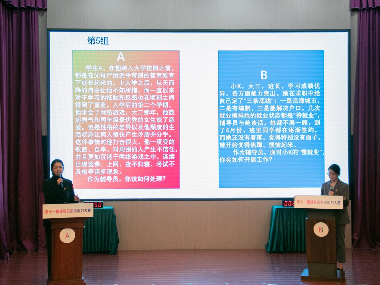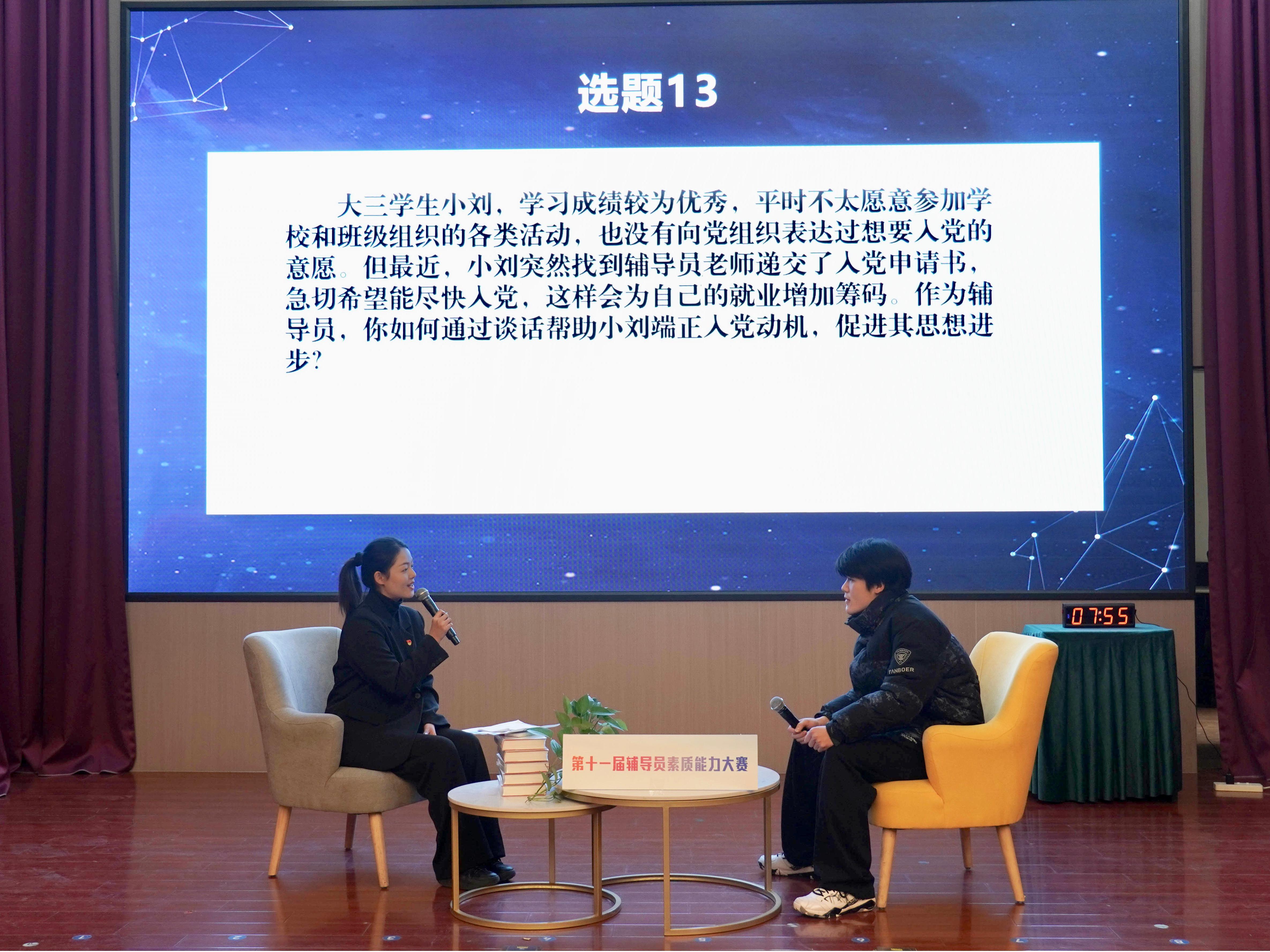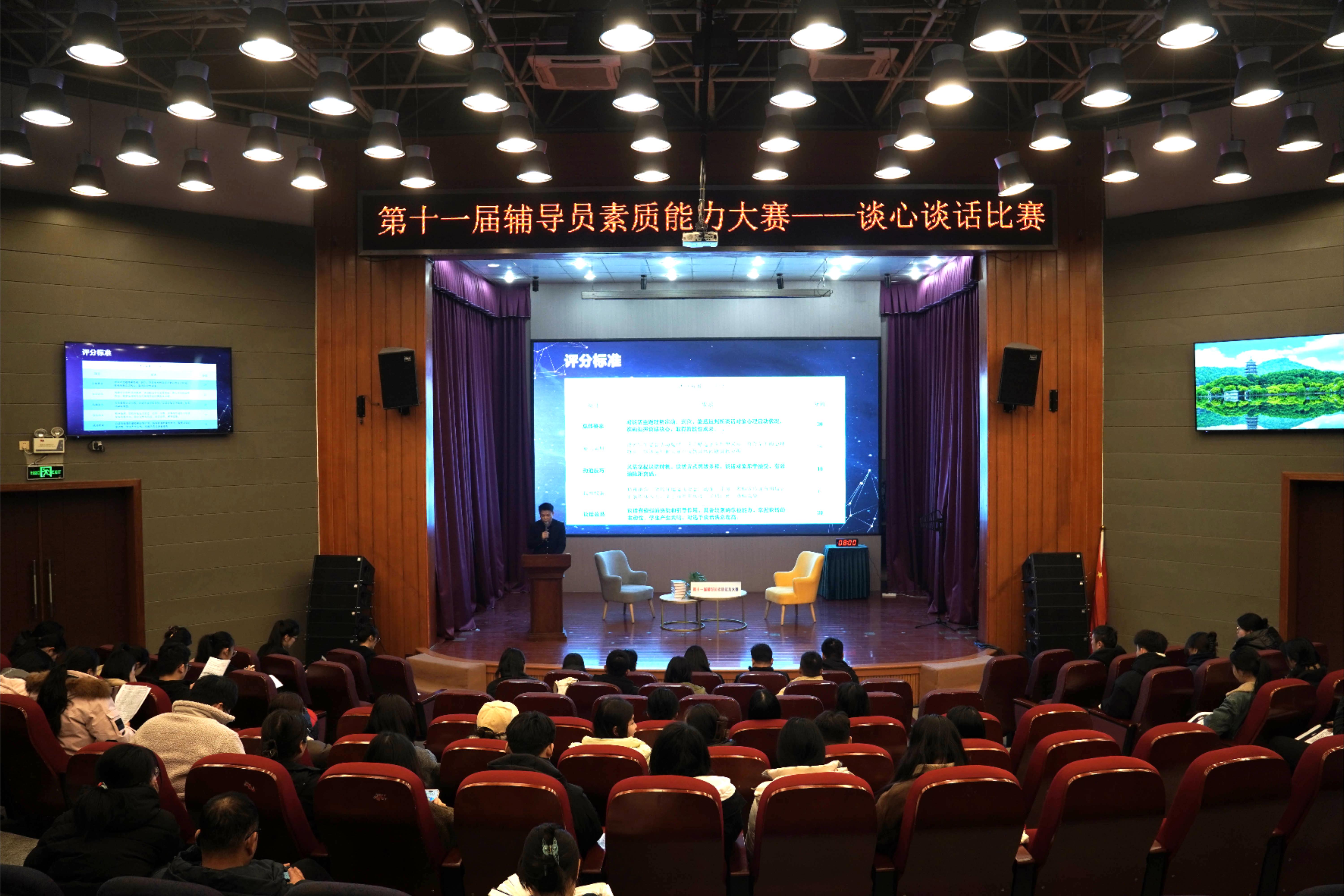 本次辅导员素质能力大赛对标省级赛事规格,面向全校辅导员展开,分为初赛、学院复赛、校级决赛三个阶段。12月13日开展基础知识测试初赛,后经学院复赛,共有16名辅导员进入校级决赛,决赛分为案例研讨和谈心谈话两个环节。