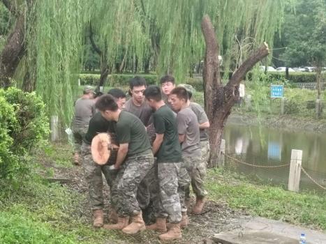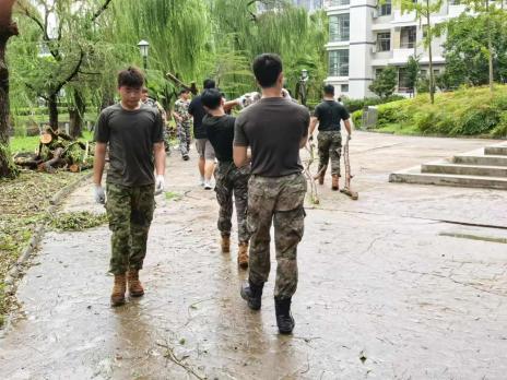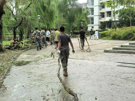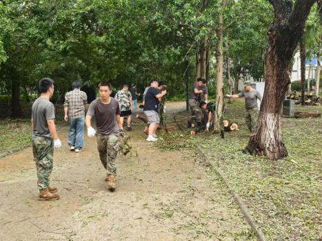 两次强台风过境后,倒伏的树木、散落的残枝,让原本美丽整洁的校园“障碍重重”。为保障校园安全,恢复教学秩序,退役志愿者们冲锋在前,全力以“复”,深入校园,仔细巡察每个角落,排隐患、疏障碍、保畅通,以军人担当筑牢校园安全“硬防线”。