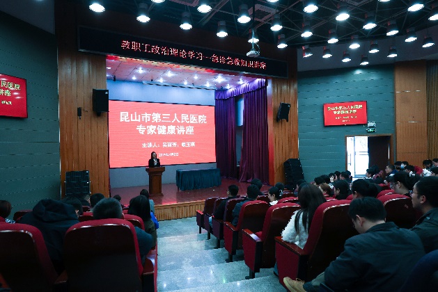 签约仪式后,高新区相关部门的领导与三方共建单位领导代表合影,在马长世、徐伟、苏琼瑶等校领导的陪同下,市第三人民医院、江浦社区卫生服务中心领导和代表参观了beat365信息与软件工程学院、智能制造学院党建活动阵地和理实一体化教学场所,深入了解学校产教融合创新成果。期间,昆山市第三人民医院医疗专家团队同步为教职工代表开展了健康知识讲座,普及了急救知识和心理健康防护技能。
