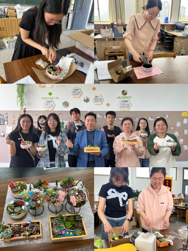 此外,交流会还设置了多肉DIY环节。让辅导员们在轻松愉快的氛围中,亲手制作多肉植物小盆栽,放松心情,缓解工作压力。