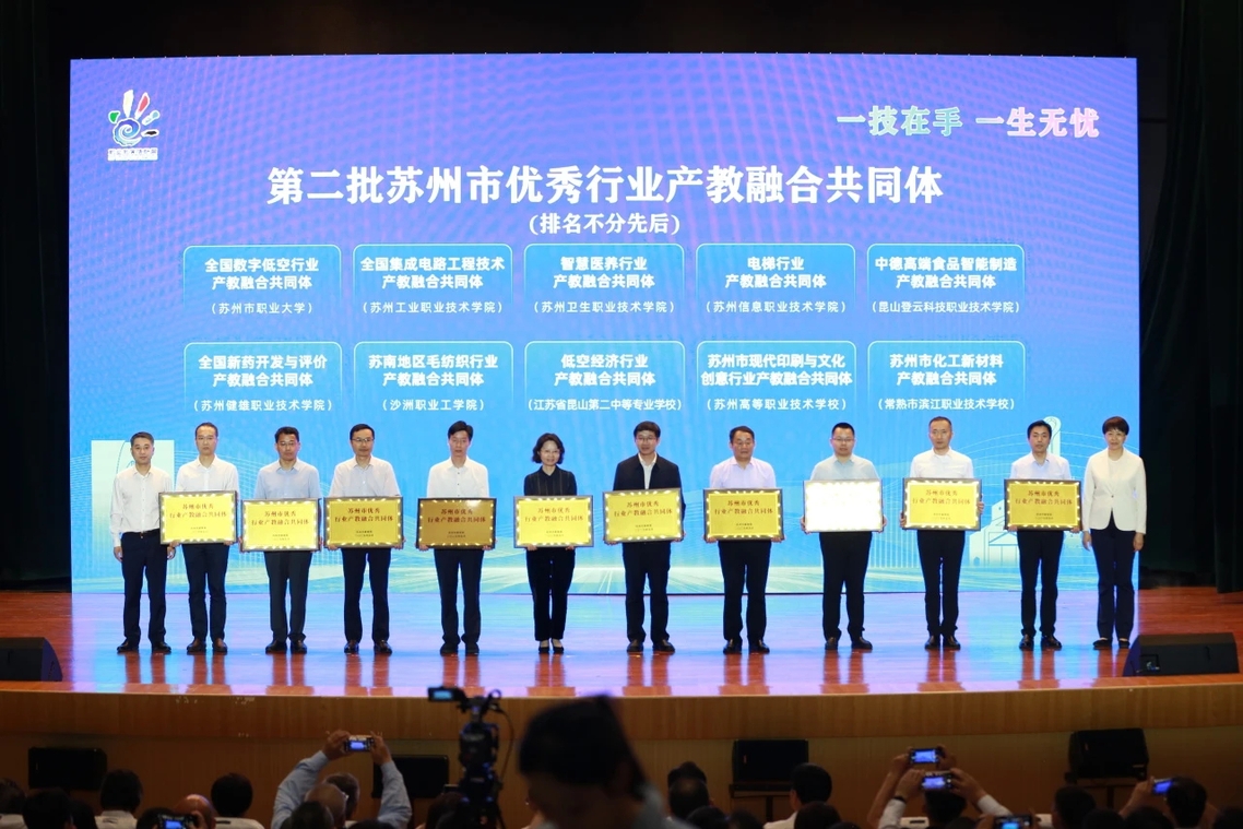 启动仪式上,还揭牌了第二批“苏州市优秀行业产教融合共同体”,beat365获此殊荣,钟名湖校长代表学校上台领奖。这不仅是对学校过往产教融合工作的高度认可,更是激励学校迈向新征程的强劲动力。