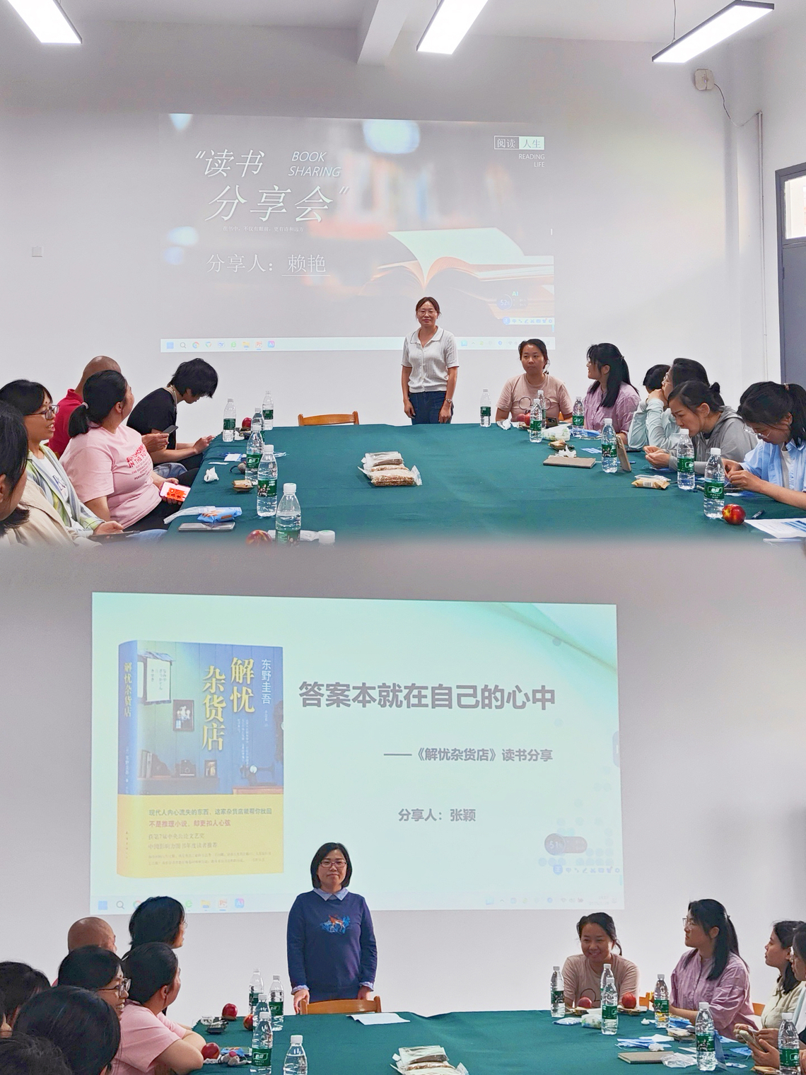 随后,举办了分工会读书分享活动。赖艳、张颖两位老师围绕自己感兴趣的中外经典作品展开交流,现场讨论热烈,展现了教师们深厚的文化素养。