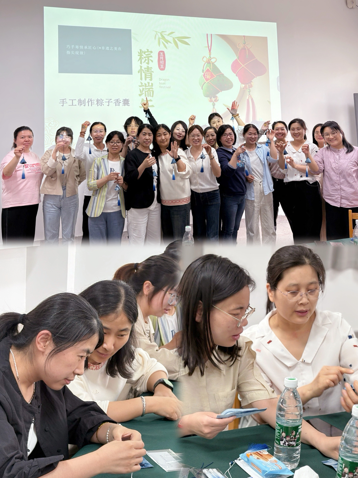 教职工们还制作了端午香囊,穿针引线中将艾叶、菖蒲等中药材填充进精心缝制的香囊中,在一针一线中深刻感受传统习俗的温度。