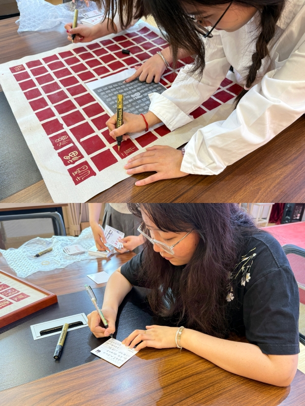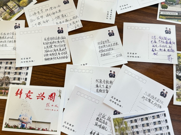 活动现场,同学们以明信片为载体,书写对母校的感恩与祝福,一笔一划间饱含深情。在绘制百福图环节,大家分工协作,用画笔将“福”字巧妙组合,寓意学校未来福气满满。