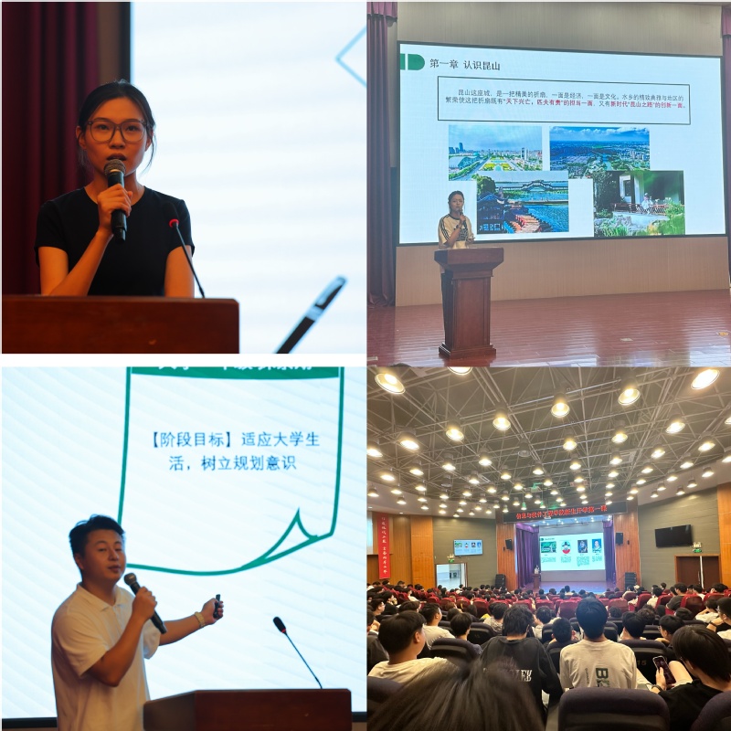辅导员从多元角度为新生带来实用而丰富的分享,简要介绍昆山深厚的人文底蕴,包括顾炎武的家国名言、“百戏之祖”昆曲的艺术魅力,周庄、锦溪等古镇的水乡风情,奥灶面、大闸蟹等美食和便捷通达的苏沪地铁线路,鼓励同学们在学习之余走进这座城市,感受江南文化的浸润。