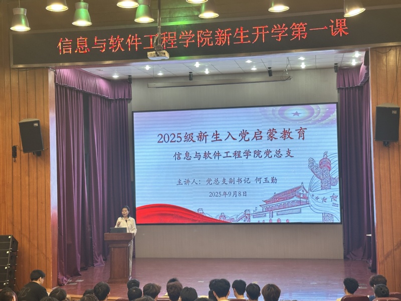 2025年9月8日,为引导新生深学党的知识、树立正确入党观念,信息与软件工程学院面向全体2025级新生组织两场入党启蒙教育活动,实现全覆盖。学院党总支副书记何玉勤、学工支部书记杨娣担任主讲,助力新生“扣好入党第一粒扣子”,为青春航向锚定红色坐标。