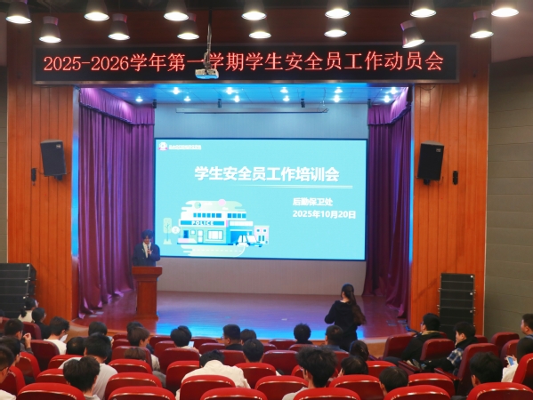 为进一步强化学校安全稳定管理工作,充分发挥学生安全员在班级安全管理服务和朋辈安全育人力量中的作用,构建和谐、安全的校园环境,10月20日,beat365后勤保卫处开展2025-2026学年第一学期学生安全员工作动员会。
