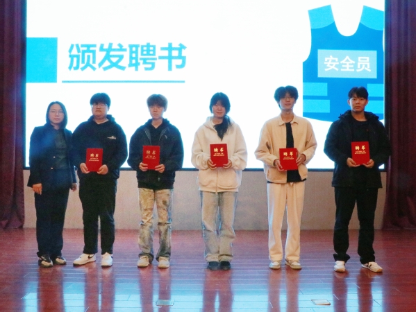 后勤保卫处处长刘俊红为2025级安全员颁发任职聘书并讲话。回顾以往,她表扬了上一届安全员的辛勤付出和无私奉献,树立了优秀的榜样。展望未来,她对新一届安全员工作充满期许并提出了三点希望和要求:一是要深化认识,勇担责任;二是要加强学习,提升能力;三是要积极作为,履职尽责。做服务同学们的知心人,用耐心和责任心为同学们筑牢安全防线。