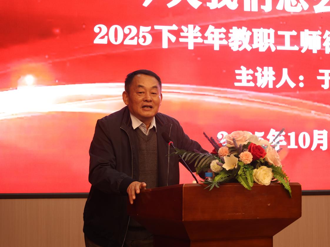 为进一步加强师德师风建设,教育引导全体教师对标榜样、见贤思齐,自觉弘扬践行教育家精神,10月22日,学校在多功能报告厅举行2025下半年师德师风专题培训会,特邀全国最美教师、全国模范教师、叶圣陶教师奖获得者于洁老师作专题分享。会议由校长钟名湖主持,党委书记马长世、党委副书记副校长徐伟、党委委员校长助理苏琼瑶出席会议,全体中层干部、教师代表、辅导员代表参会。
