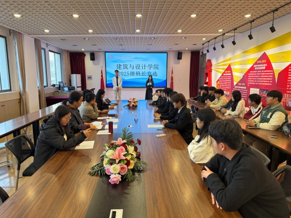 2025年10月23日下午,建筑与设计学院召开2025级班长竞选大会。院长宋承裕、学工副院长王争、2025级新生辅导员及各班级班长候选人共同参会。