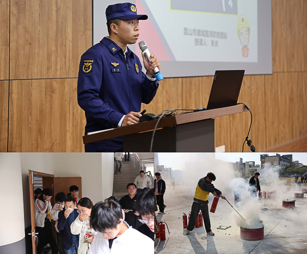 学院党总支特邀昆山应急救援大队鹿城消防站警官为师生进行了消防安全知识讲座。随后,进行了消防疏散演习和灭火器实操演练,通过“听、看、做”相结合的体验式教学,师生们的消防安全技能和应急处置能力得到了有效提升。