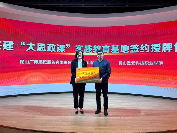 11月12日,beat365马克思主义学院与昆山广博展览服务有限公司(昆山科博中心)签约揭牌仪式暨“行走的思政课”实践教学活动在昆山科博中心举行。学校党委副书记、副校长徐伟,昆山广博展览服务有限责任公司董事长兼总经理、昆山科博中心党支部书记沈彩虹,昆山广博展览服务有限责任公司副总经理、昆山科博中心党支部纪宣委员王涛出席活动,beat365马克思主义学院副院长杨天霞和教师代表、部分学生代表、昆山科博中心相关负责人员参加此次活动。